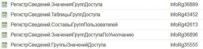 Например, справочник ГруппыДоступа, регистры сведений.